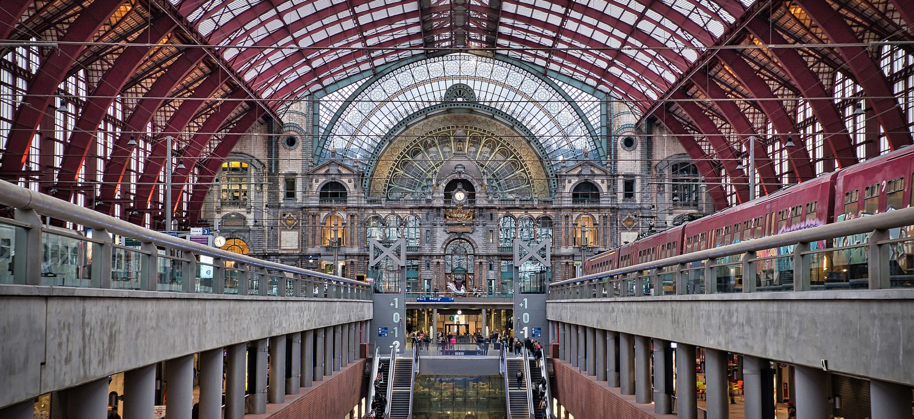 Het station van Antwerpen-Centraal, een architecturaal pareltje uit het begin van de 20ste eeuw, prijkt niet voor niets bovenaan de internationale top tienen van mooiste stations ter wereld. Vooral de monumentale inkomhal trekt toeristen én fotografen, tekenaars en schilders van heinde en verre. Met veertien perrons verdeeld over drie niveaus is het bovendien bestand tegen grote reizigersaantallen. Pittig weetje: het station kwam er op vraag van koning Leopold II – zo heeft die man toch iéts gedenkswaardigs verwezenlijkt.