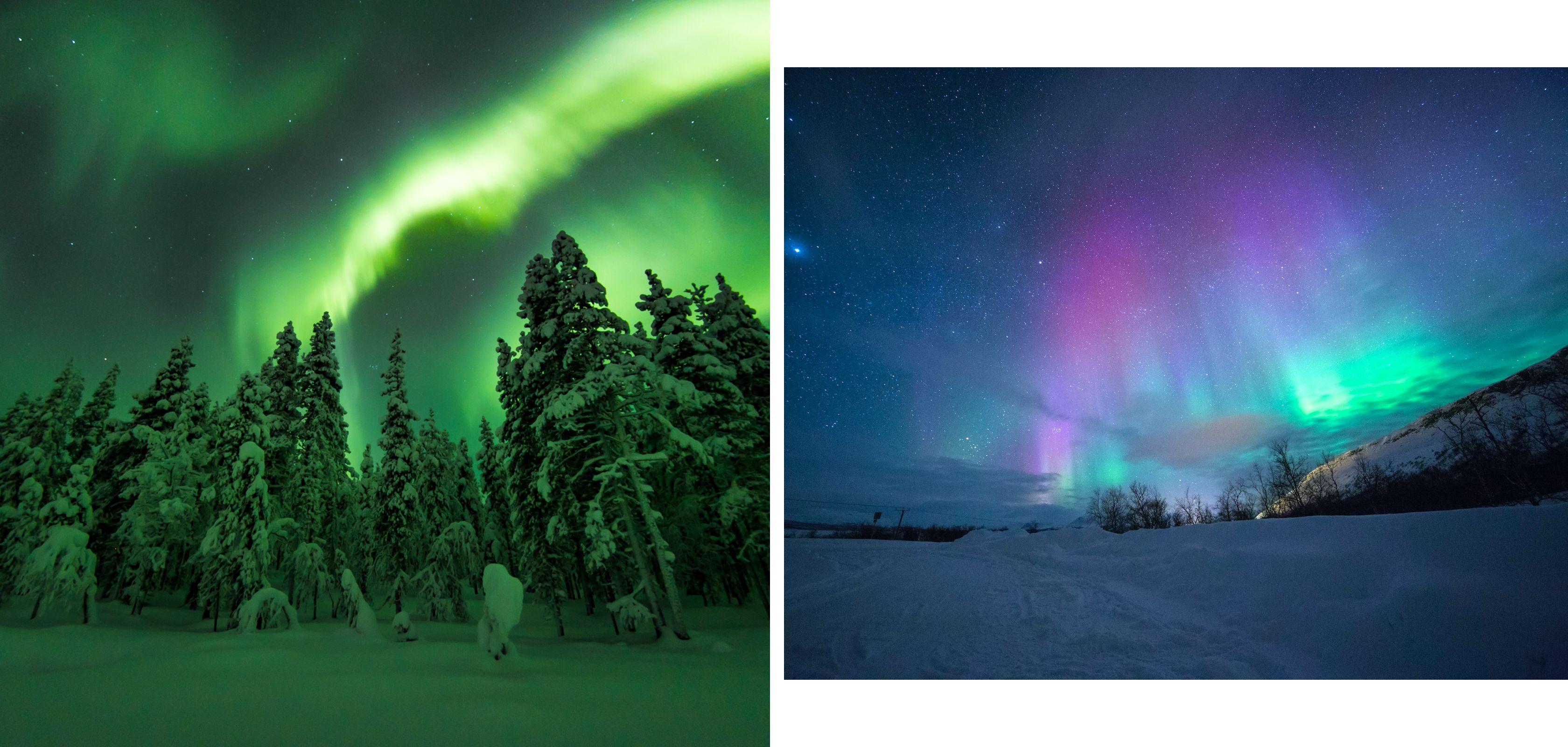 Dit prachtige schouwspel aan de nachtelijke sterrenhemel ontstaat doordat elektrisch geladen deeltjes afkomstig van de zon in onze atmosfeer terechtkomen. Wanneer deze deeltjes met luchtdeeltjes in de dampkring botsen, lichten ze op als groene, gele en soms zelfs rode kleuren.