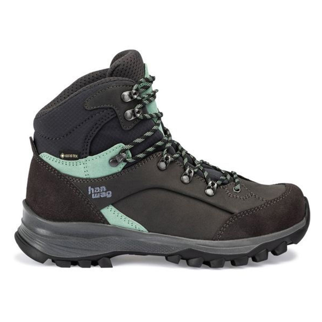 “Deze stoere stapper van Hanwag is de eerste categorie B-schoen in echt brede uitvoering. . Dus ga je backpacken door bergachtig terrein? Dan heb je bij deze het juiste model gevonden: een stevige wandelschoen met een stijve maar superlichte zoolconstructie, die grip en steun garandeert, zodat jij gezwind als een berggeit naar boven huppelt. Dankzij het Gore-Tex-membraan is de schoen waterdicht en blijven je voeten droog. De ‘HANWAG 2 Zone Lock’, het ‘slotje’ boven op de veters, zorgt voor een betere hielfixatie.”