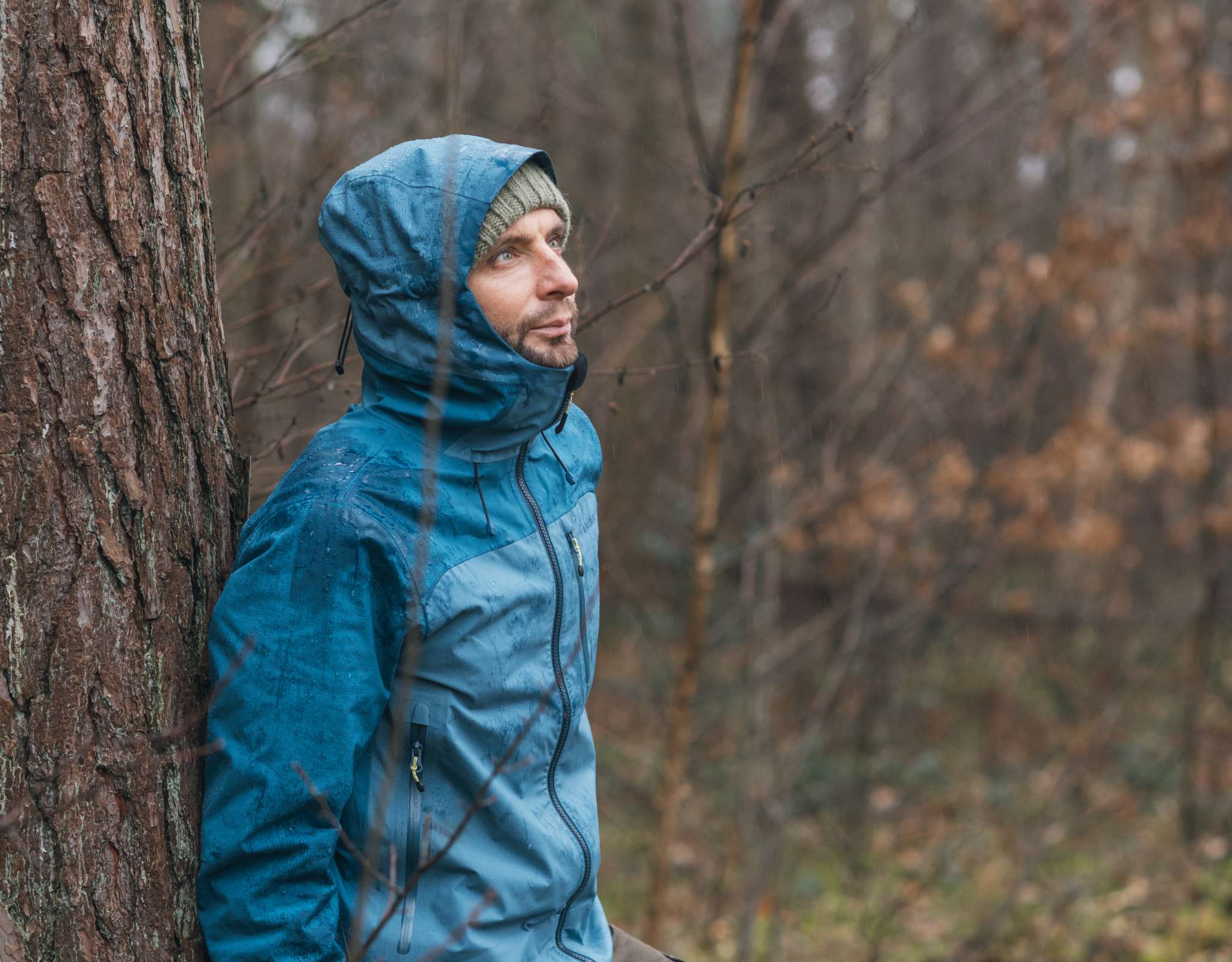 Ook nadat Jelle de Mountain Peak-jas aantrok, bleef hij enthousiast. “De jas voelt stevig en robuust, ideaal voor outdooravonturen. Ik hou van dat krakende geluid als je zo’n jas voor het eerst aantrekt! De jas is waterdicht en heeft een DWR-behandeling gekregen. Daardoor rollen waterdruppels zo van de stof af. Je blijft dus langer droog. Door het hoge ademende vermogen voelt de stof niet klam tijdens inspanningen, want zweet wordt vlot afgevoerd. Dat verhoogt het draagcomfort.”