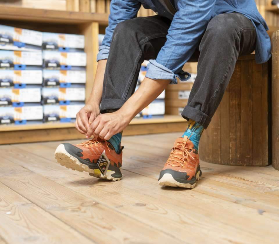 Krijg je tijdens het wandelen zeer aan de wreef van je voet? Dan helpt het om daar spanning weg te nemen. Sla halverwege één of twee vetergaatjes over bij het rijgen. Zo krijgt je wreef meer ruimte, waardoor de druk afneemt.