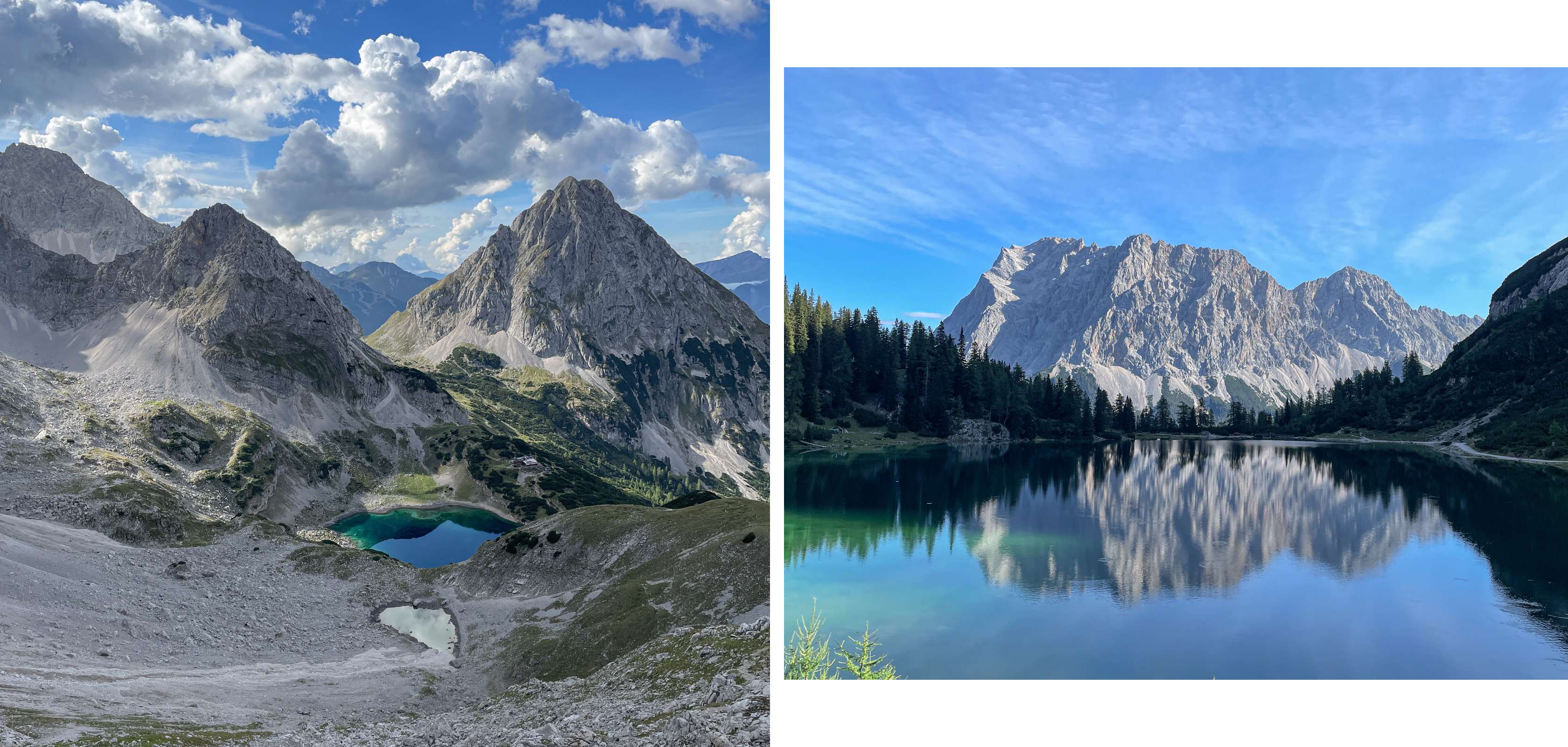 Lander: “Aan de voet van de Zugspitze, de hoogste berg van Duitsland, ligt het dorpje Ehrwald. Van daaruit vertrokken we op een tweedaags avontuur. We wandelden langs de Drachensee en de Seebensee en overnachtten in de gezellige Coburger Hütte.
