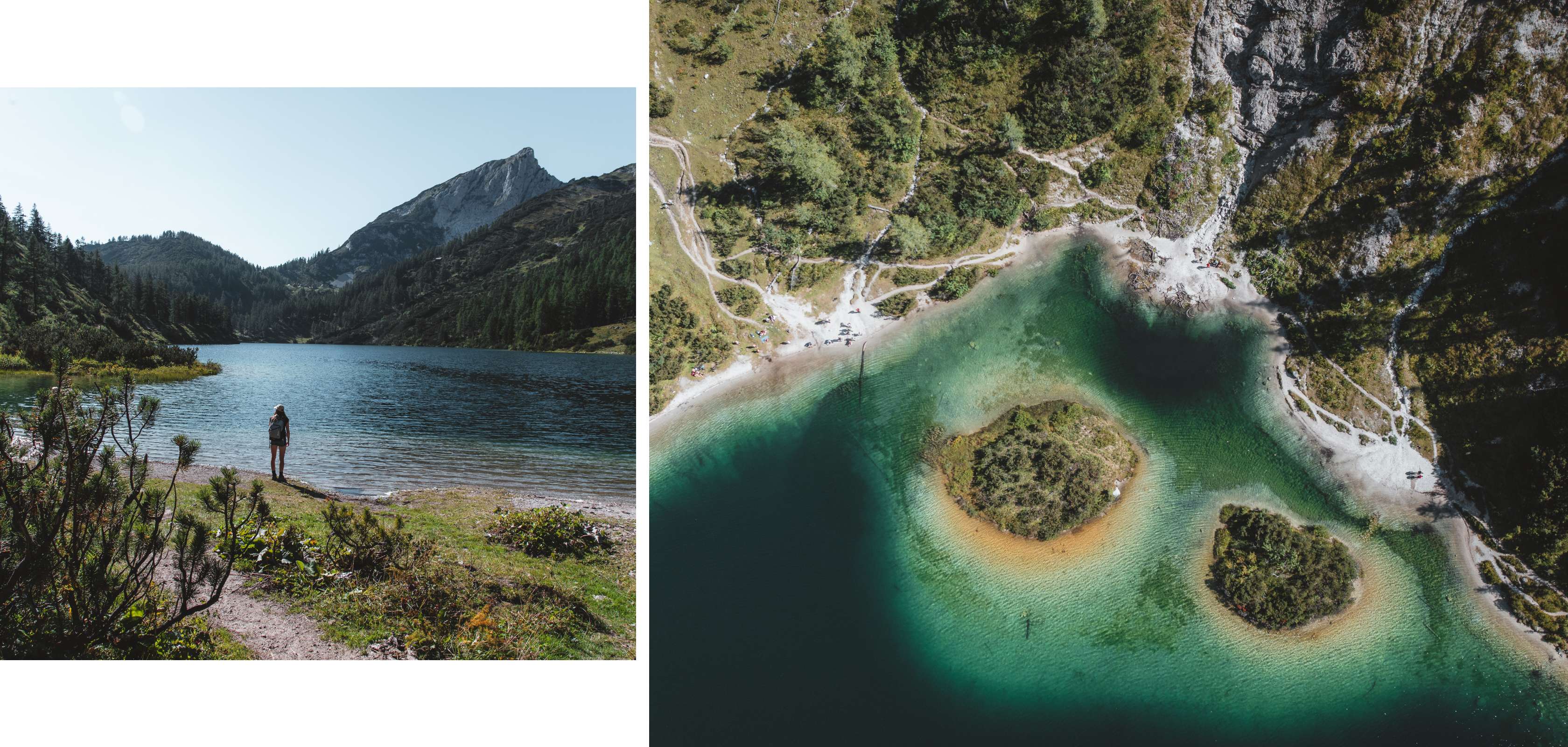 Aan de iconische Seebensee kan je pootjebaden in kristalhelder water met grazende schaapjes en bergtoppen op de achtergrond. Als je van koud water houdt, kan je er natuurlijk ook een duik in nemen, maar zo moedig waren we niet… Vlak bij de Coburger Hütte ligt de Drachensee, een bijna perfect cirkelvormig meer met azuurblauw water – als daar de zon op schijnt, lijkt dat wel magie!”